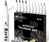 Štětcové akrylové popisovače ARRTX ve 4 barvách: bílá, černá, zlatá a stříbrná.