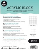 Akrylový blok je nepostradatelná pomůcka pro práci s  gelovými razítky a  razítky na cling pěně. Oba druhy razítek k bločku přilnou, slouží jako pevná podložka a držátko, poté se s nimi pracuje stejně jako s klasickým razítkem.