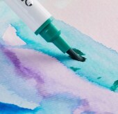 Akvarelové efekty - Inkoust je rozpustný ve vodě a můžete dosáhnout krásných akvarelových efektů tím, že jednu oblast navlhčete nejprve akvarelovou tužkou (není součástí dodávky) a pak vybarvujete oblast barvami, které chcete míchat. (Upozornění: V tomto případě použijte akvarelový papír).