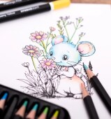 Skvěle se hodí i na vybarvování omalovánek, doporučujeme si vyzkoušet i kolorování obrázků natištěných razítky. Zvýraznit můžete obrázky předem vybarvené fixy a popisovači.