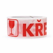 Páska s potiskem KŘEHKÉ / FRAGILE je univerzální balicí páska plně nahrazující pásku POZOR SKLO.