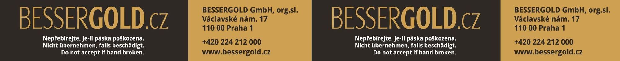 Správná luxuxní páska, která kombinuje černou, zlatou a bílou. 2-barevný potisk bílé pásky, kdy se těsně střídají štočky s černou a zlatou barvou a netisknutelná mezera díky tomu zaniká.