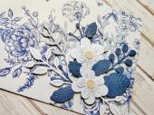 Přání ruční výroba - Květiny v obálce - jemné barvy, metalická béžová a bílá - 1 ks
