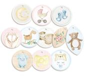 Sada oboustranných dekorativních visaček s miminkovskými motivy. Visačky jsou perfektní drobností/dekorací na Vaše dárky nebo skvěle vypadají na všech kreativních projektech.