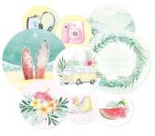 Sada oboustranných dekorativních kulatých visaček s letními motivy v jemných patelových tónech. Visačky jsou perfektní drobností/dekorací na Vaše dárky nebo skvěle vypadají na všech kreativních projektech.