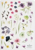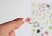 Aršík má velikost A6 a je na něm 43 něžných nálepek. Květiny jsou v originálu malované akvarelem.