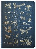 Sešit Malý princ s hvězdnou oblohou je nádherný sešit, který je výsledkem práce v tiskárně, kde podle kresby zhotovili mosaznou matrici a na temně modrý papír s povrchem, který připomíná hvězdnou oblohu, zlatě vyrazili ručně kreslené motivy.