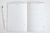 Uvnitř motiv pokračuje jako lemování spodního okraje, na listech jsou rozeseté drobné kytičky. Vnitřní grafika je s tečkami, které jsou mezi sebou ve vzdálenosti 0,7 mm. Na předsádce je okénko s třemi řádky. Obálka je z papíru vyšší gramáže s jemnou luxusní strukturou, potisk je matný,