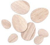 Dřevěné tvary zobrazující vejce různých velikostí.