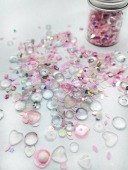 Sada flitrů a glitrů 10 g - růžová s průhlednými srdíčky