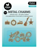 Drobné kovové přívěsky ve zlatém provedení se stylovou vintage patinou se hodí ke zdobení různých kreativních projektů od papírového tvoření až po bižuterii. Využijete je ke zdobení scrapbooků, přání, visaček, záložek do knih, dárkových tašek a krabiček apod., jdou zakomponovat i do vlastnoručně vyrobené bižuterie.