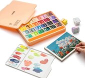Kelímky jsou dvoukomorové, s víčky proti vysychání, což výrazně prodlužuje životnost barev. Kompaktní kufřík je ideální i pro přenášení do školy, na kurz nebo do plenéru.