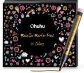 Metalické fixy OHUHU mají zářivý a třpytivý inkoust, se kterým lze pracovat na široké skále povrchů - papír, keramika, sklo, kameny, kov i dřevo. Díky zářivým pigmentům lze s krásnými efekty používat i na tmavých podkladech.