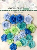Papírové květiny Studio Light, 20 ks - modré a zelené