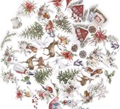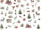"Lovable Christmas" je okouzlující kolekce v tlumených barvách, která se skvěle hodí pro projekty ve vintage stylu. Najdete zde mnoho vánočních motivů, jako jsou lesní větvičky, stromečky, dárky, ozdoby nebo zimní scenérie domů. Vánoční kolekce Lovable obsahuje také dva modely třpytivých samolepek a saténových stuh. Mezi další vhodné produkty patří dřevěné prvky, látkové samolepky, věšáky, flitry a kovové zvonky.