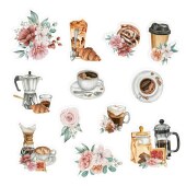 Papírové výseky P13 - Coffee Break obsahují 12ks "kavárenských" motivů - kávové speciality, dobroty ke kávě a květiny. Tato tématicky celoroční kolekce je ke zdobení kreativních projektů přímo skvělá - a to nejen motivy, ale do detailu vyladěnými barevnými kombinacemi.