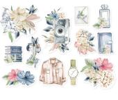 Sada designových papírových výseků s motivy květin, které lze použít na zdobení jakéhokoli kreativního projektu – scrabooking, přáníčka a jiné. Každá sada svými motivy vždy odpovídá potištěným papírům z dané kolekce.