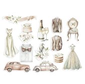 Sada designových papírových výseků s se svatebními motivy, které lze použít na zdobení svatebních kreativních projektů – scrabooking, přáníčka a jiné.
