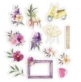 Sada designových papírových výseků s motivy květin v jasných barvách, které lze použít na zdobení jakéhokoli kreativního projektu – scrabooking, přáníčka a jiné. Každá sada svými motivy vždy odpovídá potištěným papírům z dané kolekce.