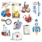 Sada designových papírových výseků s motivy profesí a věcí ze života, které lze použít na zdobení jakéhokoli kreativního projektu – scrabooking, přáníčka a jiné. Každá sada svými motivy vždy odpovídá potištěným papírům z dané kolekce.