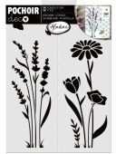 Plastové šablony s květinovými motivy lze používat opakovaně se spreji, barvami, inkousty i pastami na papír, dřevo, textil a další povrchy.