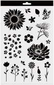Šablona s mixem květinových motivů má široké využití v mnoha kreativních oborech. Šablona je vhodná pro práci s textilem, papírem a všude tam, kde potřebujete vytvořit originální podklad.