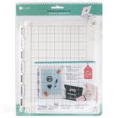 Multifunkční skleněná podložka na řezání, měření, práci s horkými nástroji a veškeré kreativní techniky. Měřítka na všech stranách v centimetrech a palcích, vyznačení běžných formátů papíru. Obsahuje podložku a 4 silné magnety.