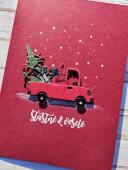 Přání ruční výroba - Auto s dárky - vínový podklad - 1 ks