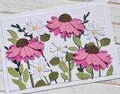 Přání ruční výroba - Echinacey a kopretiny - 1 ks