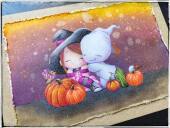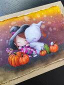 Přání ruční výroba - Halloween Duch a malá čarodějnice