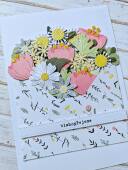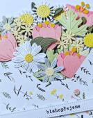 Přání ruční výroba - Rozkvetlá louka v bílém rámečku - 1 ks