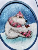 Přání ruční výroba - Lední medvěd s ptáčkem