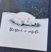 Přání ruční výroba - Lední medvěd spí - Šťastné a veselé