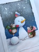 Přání ruční výroba - Noční zima - sněhové radovánky 3