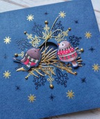 Přání ruční výroba - Ptáčci modro-zlaté