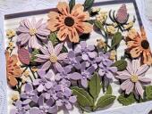 Přání ruční výroba - Slunečnice a šeřík - 1 ks