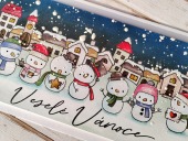 Přání ruční výroba - Sněhuláci a městečko