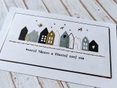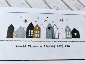 Přání ruční výroba - Vánoční domečky s vyšíváním