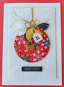 Přání ruční výroba - vánoční ozdoba bílo-červená