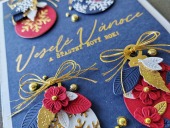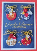 Přání ruční výroba - vánoční ozdoby modré