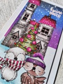 Ručně vyrobené blahopřání s motivem Vánoc a soviček. Použita razítka My Favorite Things a alkoholové fixy TOUCH Twin Brush Markers.