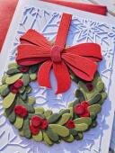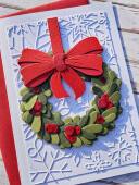 Přání ruční výroba - Vánoční věnec s červenou mašlí