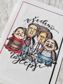 Přání ruční výroba - Tučňák, sova a zajíc - Šťastné a veselé - 1 ks