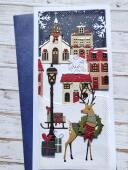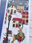 Přání ruční výroba - Zimní městečko a jelen - 1 ks