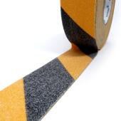 Žluto-černá protiskluzová páska kombinuje špičkovou protiskluzovou funkčnost s výrazným výstražným designem. Je ideální pro označení rizikových míst, kde je potřeba nejen zvýšit přilnavost povrchu, ale zároveň vizuálně upozornit na nebezpečí. Tento typ pásky je vyroben z odolného PET nosiče, do kterého jsou pevně zatavena ostrohranná zrna karbidu křemíku (karborunda), což zaručuje mimořádnou odolnost vůči otěru, vlhkosti a mechanickému zatížení.