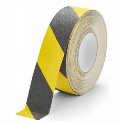 Výstražná protiskluzová páska je páska je speciální typ univerzální pásky. Je rovněž opatřená vrstvou karborundových zrn, navíc je však celá páska vyvedena jako výstražná páska se žlutočerným šrafováním.