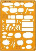 Šablona Graph'It A4 z ohebného a průhledného plastu pro snadné kreslení komiksů. Více než 25 různých tvarů bublin, obdélníků atd. Pravítko na okrajích v cm.