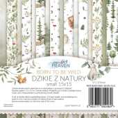 Sada scrapbookových papírů Wild by nature - 15,7 x 15,7 cm (6x6"). Sada obsahuje 12 oboustranných listů o váze 250 g, bez kyselin a bez dřeva. Sada obsahuje celkem 24 papírových vzorů - 12 jedinečných vzorů, každý po 2 kusech. Bonusem navíc je vzor na zadní straně obálky (věnce k vystřižení), který jako samostatný papír neexistuje.
