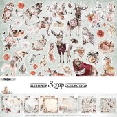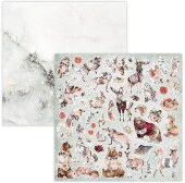 Kreativních sada scrapbookových papírů s akvarelovými ilustracemi vánočního lesa.