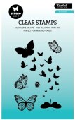 Gelová razítka v sadě s motivy motýlků a berušky. Gelová razítka jsou vyrobená z kvalitního čirého silikonu. Jejich největší výhodou je jejich průhlednost,proto se i snadno aplikují, jelikož přesně vidíte, kam tisknete. Používají se s akrylovým blokem. Je možné si na bloček naskládat více motivů a složit si tak i „vlastní“ razítko.
